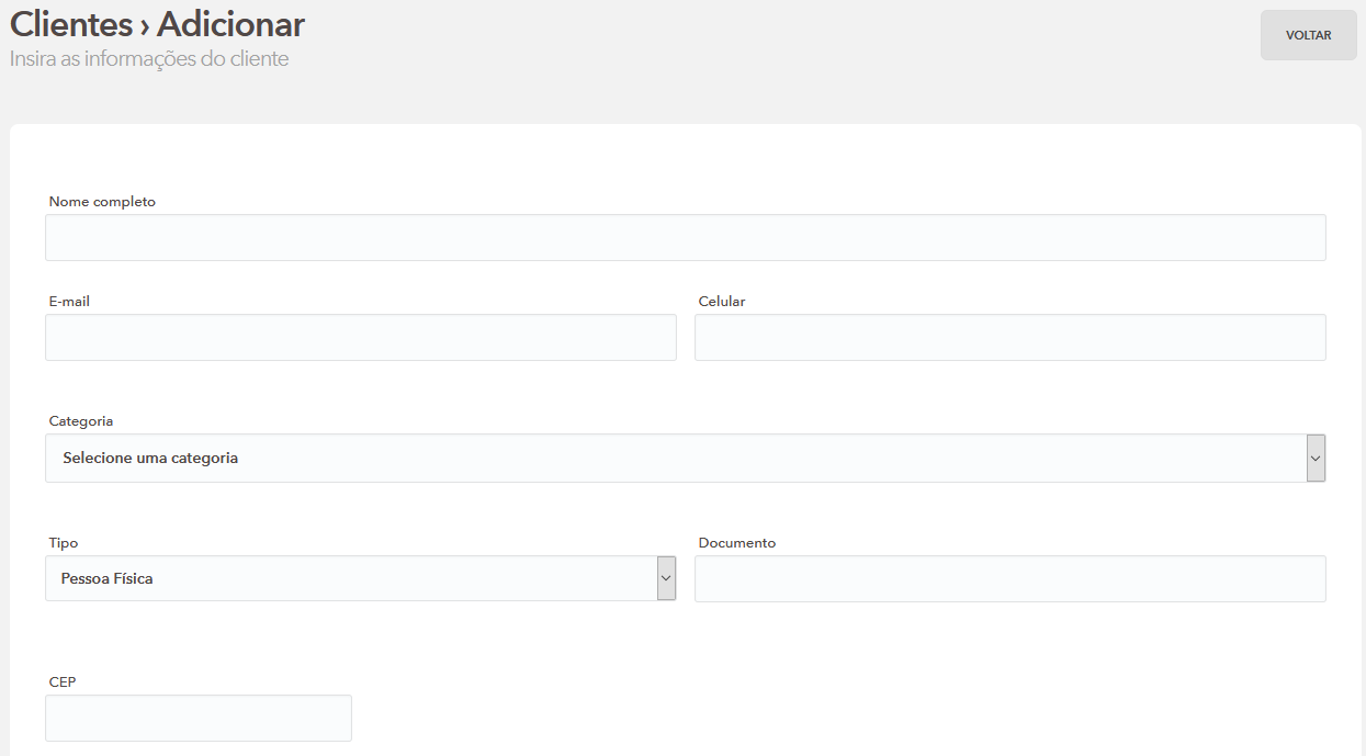 O primeiro passo é cadastrar seu cliente, após preencher os campos basta salvar.