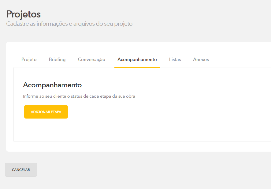 Oferecemos diversas opções diferentes dentro do projeto, basta selecionar a melhor conforme o projeto que está desenvolvendo, no exemplo que iremos mostrar vou cadastrar um acompanhamento.